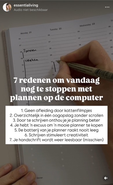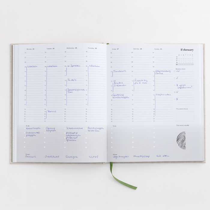 Een telefoon is een prikkelmachine. Je opent je planning en voor je het weet zit je op Instagram. Met een papieren planner gebeurt dat niet. Geen meldingen, geen pushberichten. Alleen jij en je dagindeling.